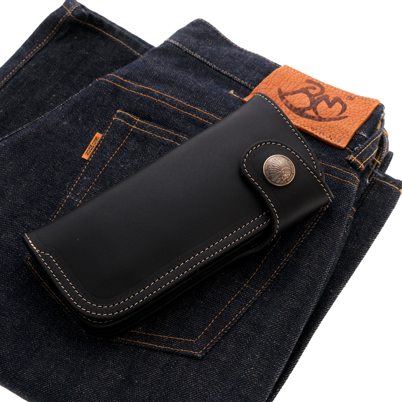 チェーンウォレットの名称で親しまれジーンズ等のヒップポケットとの相性は良く、かっこ良く収まりヒップポケットから見えるレッドムーンオリジナルコンチョが存在感あります。
