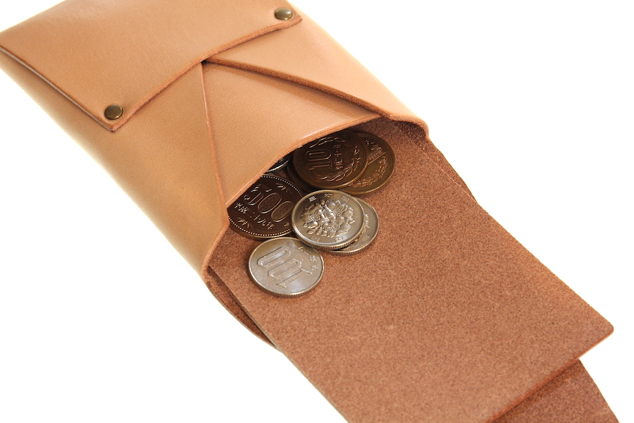 手前のスペースはコインの収納が出来、レザーを引いて奥からのコインも取り出しやすいようになっています。